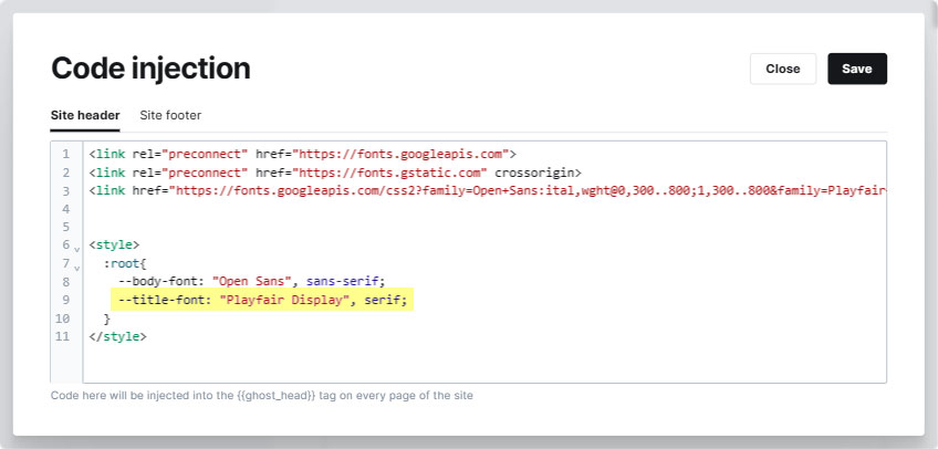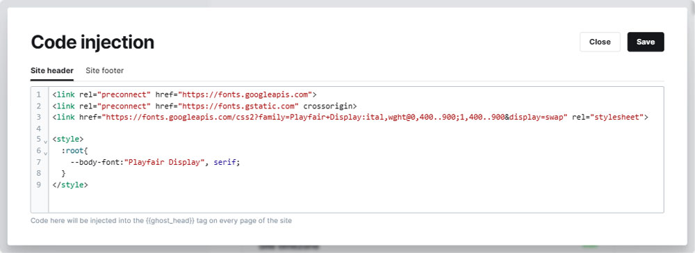 Navigate to the Code injections settings in Ghost Admin.